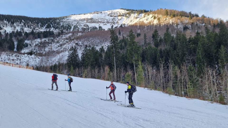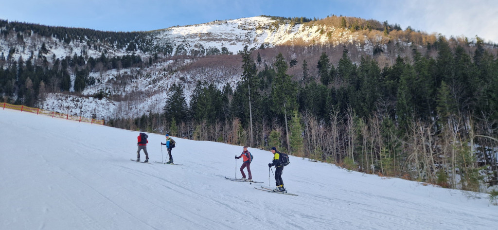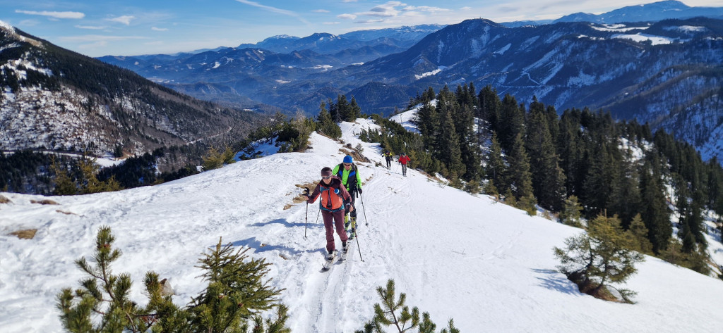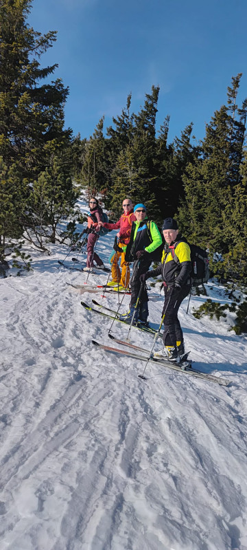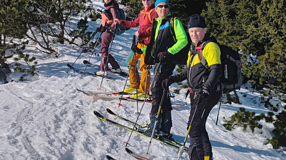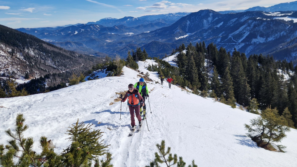Vom letzten Parkplatz steil auf den Riffelsattel wo uns die Sonne empfing. Bei herrlichen Ausplick folgte der weitere Aufstieg mal links mal rechts über einen Rücken auf den Kl.Ötscher.1550 m.Nach einer Pause Abfahrt auf Pickelharten Untergrund zur Piste und über dies direkt zum Parkplatz.HM700,Aufstieg 2 Std.