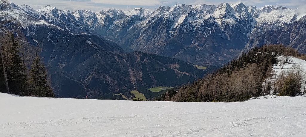 Von der Talstation in Hinterstoder stiegen wir anfangs auf der Trinklabfahrt, dann auf der Standardabfahrt zu den Hutterer Böden auf. Weiter ging es dann auf die Schafkögel, die wir nach 1.400 Hm Aufstieg erreichten. Nach einer kurzen Rast fuhren wir bei Sonnenschein auf der herrlich aufgefirnten Piste wieder ins Tal.